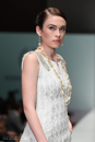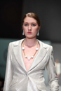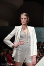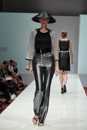 Model walks the runway in an outfit from the Norman Ambrose Collection, during Audi Fashion show in Houston Texas.